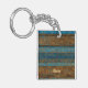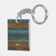 Blue Bronze and Gold Grunge Stripes Key Ring