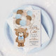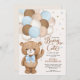 Blue Brown Beary Cute Teddy Bear Boy Baby Shower Invitation