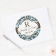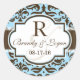Cute, elegant wedding design on elegant light blue and dark brown vintage damask pattern with brown font. Can be used for wedding, couples shower, engagement party, engagement announcement or save the date. Personalised with bride and groom's name, monogram, and wedding date. Our store, Favours and Decor, specialises in event decorations and party favours.