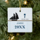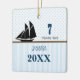 Blue & Brown Sail Boat Dot Stripes Photo Ornament