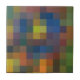A cool ceramic tile, with an abstract chequered pattern in shades of dark blue, dark green and warm earth colours, from a digital design by Judy Adamson. Add a wooden frame to use as a trivet.