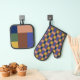 Blue Brown Tan Green Yellow Colour Block Print Oven Mitt & Pot Holder Set