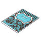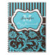 This personalised aqua blue, brown, and white floral damask with stripes journal note book has template boxes for you to add your name, monogram, or other text. If you need help customising this item, please email niteowlstudio@gmail.com for assistance.