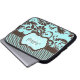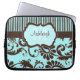 This personalised aqua blue, chocolate brown, and white stripes with damask laptop sleeve has text boxes for you to customise with your own name, monograms, business name, or other text. If you need any help customising, please email niteowlstudio@gmail.com.