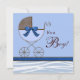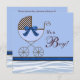 Cute brown & blue baby carriage with navy blue bow, and blue & brown zebra stripes baby boy shower invitations. This blue zebra design is easily personalised for your event, simply choose the orange "Customise it!" button to begin adding your event details, font style, font size & colour, and wording to the front and back.