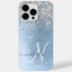 Blue Brushed Metal Silver Glitter Monogram Name Case-Mate iPhone Case