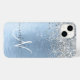 Easily personalize this trendy chic phone case design featuring pretty silver sparkling glitter on a blue brushed metallic background.
