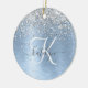 Blue Brushed Metal Silver Glitter Monogram Name Ceramic Ornament