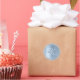 Easily personalise this trendy chic round sticker design featuring pretty silver sparkling glitter on a blue brushed metallic background.