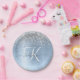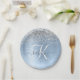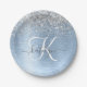 Blue Brushed Metal Silver Glitter Monogram Name Paper Plate