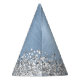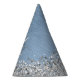 Easily personalise this trendy chic party hat design featuring pretty silver sparkling glitter on a blue brushed metallic background.