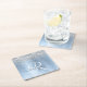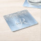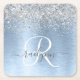 Blue Brushed Metal Silver Glitter Monogram Name Square Paper Coaster