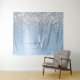 Blue Brushed Metal Silver Glitter Monogram Name Tapestry