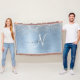 Blue Brushed Metal Silver Glitter Monogram Name Throw Blanket