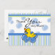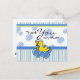 Blue Bubble Ducky Baby Shower Thank You Postcards Adorable baby shower thank you notes featuring happy little duck with blue bubbles and striped background accents. Personalised text. Great shower gift! Coordinated stickers, baby shower invitations, postage stamps and keepsake buttons also available PinkInkArt original!