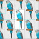 Blue budgerigar bird cartoon illustration fabric