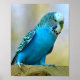 Blue budgerigar perched postcard square sticker T- Poster