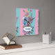 Blue Budgie Bird Rose Floral Pink Aqua Girls Name Square Wall Clock