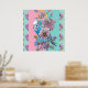Blue Budgie Bird Rose Flower Painting Aqua Pink Poster. This lovely poster would compliment any decor. Designed from one of my original paintings.