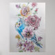 Blue Budgie & Red Rose Watercolour art Poster. A glorious poster to compliment any decor. Designed from my original watercolor paintings, that I painted from my own flower garden.