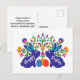 Blue 🐰 Bunnies with Folklore Flowers Custom Text Postcard