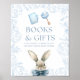 A cute little bunny is on the way. This books and gifts sign features pretty florals and a cute bunny.