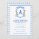 Blue Bunny Rabbit Gingham Monogram Crest Birthday Invitation