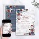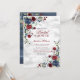 Blue Burgundy Floral Marble Script Elegant Bridal Invitation