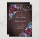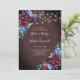 Blue Burgundy String Lights Floral Wood Wedding Invitation