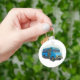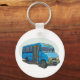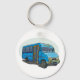 This design is of a blue bus done in a fun style. The bus is mostly blue with a yellow trim in places. This blue bus design looks great on this Keychain