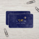A chic navy blue business_card for a travel agent... with monogrammed name, a faux gold (ochre colour) map of world and an aeroplane... dark blue distressed background colour.