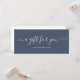 Simple and elegant minimalist blue and white gift certificate. This elegant script Gift certificate fits perfectly within a standard #10 business envelope. Perfect for your brand and business.
