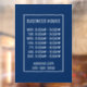 Blue with white border business hours sign for window.
