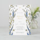 Rehearsal Dinner Foil Invitation with a frame of elegant branches with blue buttercup and leaves. Hand drawn abstract blue delicate flowers leaves on white background. Romantic floral nature background. Abstract nature branches. Spring or summer floral design. Botanical plot. Soft blue botany Rehearsal Dinner Foil Invitation. Blue Buttercup Collection.
