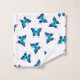 Lovely blue butterfly bathroom towel set. This set includes three white towels all decorated with a cute blue butterfly pattern. Use them as bath accessories that will both be practical and serve as a decorative accent. Goes well with a nature inspired blue and white bathroom decorating style. Makes a wonderful housewarming gift idea for a butterfly lover.