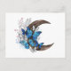 Blue butterflies on wooden crescent holiday postcard