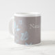 Sweet and dainty Butterfly Floral Jumbo Mug with a muted dusty grey background and light blue butterflies and floral vine embellishments. This elegant floral mug is perfect for drinking your favourite hot beverage with a dash of girly flair. Easy to customise, simply add the personalised text of your choosing in the text fields provided. Click on the "Customise It" button to find additional personalisation options.