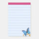 Lined Post it notes with a cute blue butterfly and three gold metallic look confetti dots on light blue background.