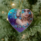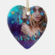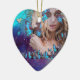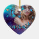 BLUE BUTTERFLY IN TEAL GREEN GOLD SPARKLES HEART CERAMIC ORNAMENT