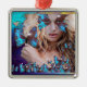 BLUE BUTTERFLY IN TEAL GREEN GOLD SPARKLES METAL ORNAMENT