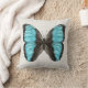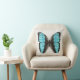 Blue butterfly pillow with a digital drawing which showcases the beauty and elegance of one of nature's most stunning creatures - the Blue Morpho butterfly. The artwork captures the essence of the butterfly's iridescent blue wings. The background of the artwork is kept simple, with a muted white colour that contrasts the vibrant blue of the butterfly's wings. It is a perfect addition to any entomology and insect art lover's collection and a tribute to the awe-inspiring beauty of the natural world.