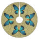 Blue Butterfly On Gold Glitter Tree Skirt