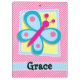 Cool, colourful kid's butterfly, light blue, pink, pale yellow design on pink and white stripes, striped pattern. Perfect gift for baby, toddler, kids, children, teens, or adults! Personalised the design template by adding a child's name or custom text. Visit our store, Birthday Party House, for more great customisable girly girl products!