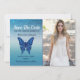 Celebrate her milestone 15th birthday with this glitter-inspired Quinceañera Save the Date card. Designed in elegant blue tones with sparkling digital glitter, this photo card features a beautiful butterfly illustration, formal script, and space for your daughter’s picture. Personalise with her name, event date, and location. A stunning way to announce her special day and build excitement before the formal invitation arrives.