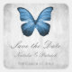 Elegant and simple Wedding Save the Date Stickers featuring a Blue Butterfly against a grey grunge background. This design is a unique choice for announcing a modern wedding. Easy to customise with your wedding details. Click "Customise It" to find more personalisation options.
