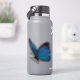 This sticker features a blue butterfly. It's a great way to add a touch of nature to your laptop, water bottle, or other smooth surface.