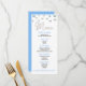 This is a blue butterfly themed birthday party menu. The design consists of a blue butterfly and silver glitter theme.