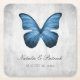 Elegant and simple Wedding paper coasters featuring a Blue Butterfly against a grey grunge background. This design is a unique choice for a modern wedding. Easy to customise with your wedding details. Click "Customise It" to find more personalisation options.