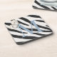 This coaster has a delicate blue butterfly over your personalised monogram and a background of realistic zebra fur.
