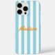 Blue Cabana Stripes Retro Monogram Case-Mate iPhone Case